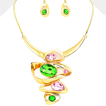Make a statement in pink and green with this pretty abstract crystal stone necklace. *Gold tone metal *Necklace Size: 17″ + 3″ L *Earrings Pierced Size: 1.7″ L *Pendant Size : 3.5″ L *A great gift. *Shade may vary.