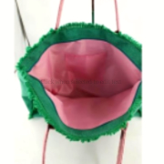 Make a pretty stylish statement with this “SUMMER” rope detail embroidered fringe pink and green large tote bag. Perfect for any season to carry to what you need in style. *Pink lining. *Shade may vary. *A great gift.
